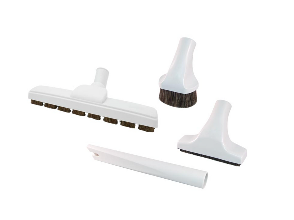 This Central Vacuum Cleaning Set with 35' Crush Proof Hose is high quality, includes everything you need to to use in combination with your central vacuum system! Including a 24 volt hose, telescopic wand, hose holder, attachment holder and Super Luxe brush kit. And a 5 year warranty!